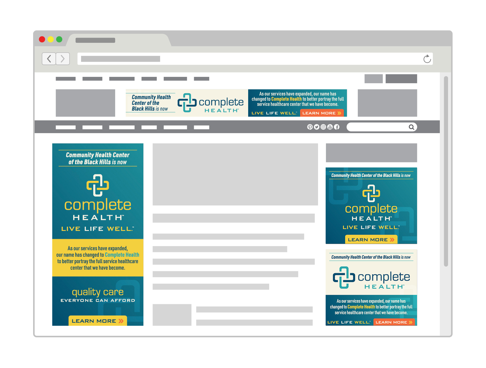 - Comprehensive Rebranding: Developed a new name, logo, and messaging for Community Health Center of the Black Hills, now Complete Health.